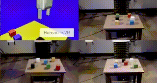 在實驗室進行的案例中,OpenAI嘗試教會機器人手臂如何堆疊一系列有顏色的正方體。首先人類需要佩戴VR眼鏡在虛擬現(xiàn)實環(huán)境中手動執(zhí)行一次任務,將各色正方體堆疊在一起,OpenAI利用視覺網(wǎng)絡(一種被被萬張模擬圖片訓練的神經(jīng)網(wǎng)絡)來觀察這些動作,再將這些動作轉(zhuǎn)換成為數(shù)據(jù)輸入到機械臂中進行相應的操作。