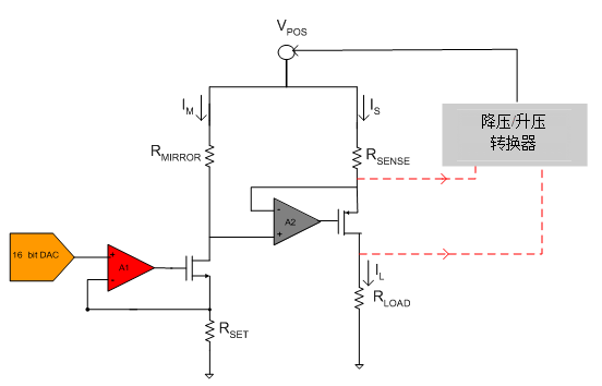 圖2:具有降壓/升壓轉換器的高端電壓—電流轉換器